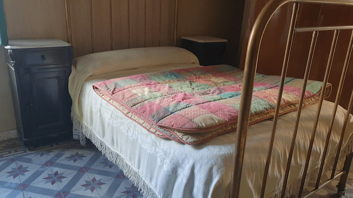 Cama cómoda, grande y mantas. Además estufa para precalentar la habitación antes de dormir. ¡Dormirás super bien!