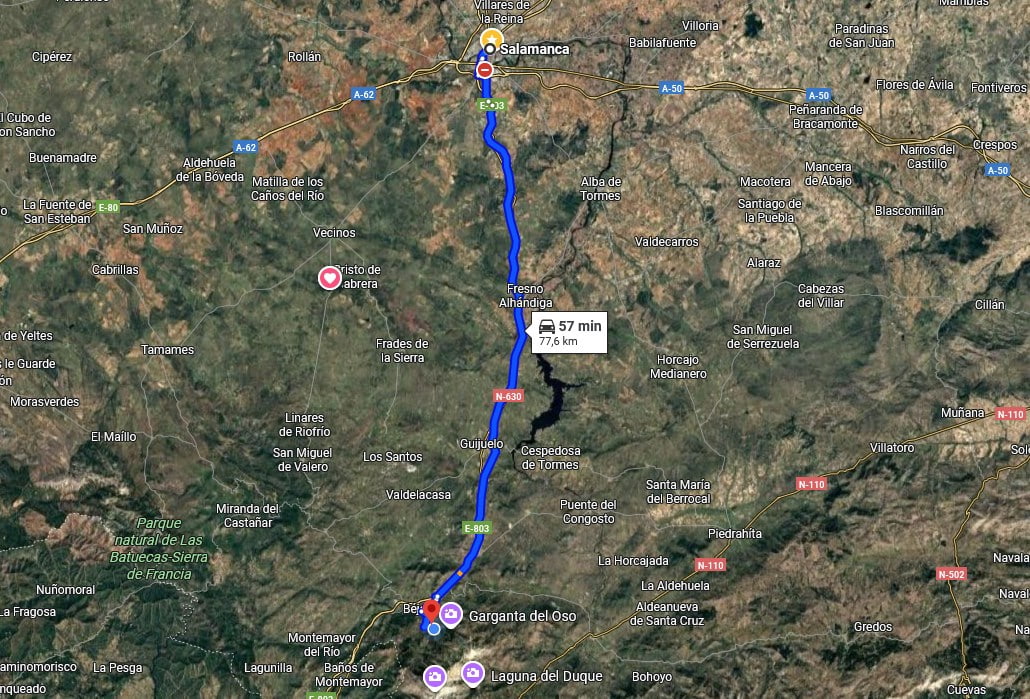 Desde Salamanca puedes venir en autobús gratis con la Tarjeta BusCyL hasta Béjar (1 h de viaje). Desde Béjar puedes subir a Candelario en taxi (por 9€).